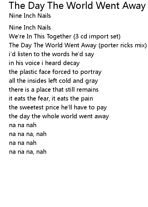 | The Day The World Went Away (porter ricks mix) | |