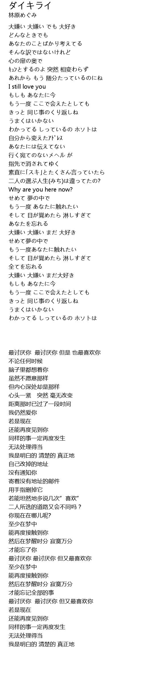 | [02:47.17] | 大嫌い 大嫌い まだ 大好き |