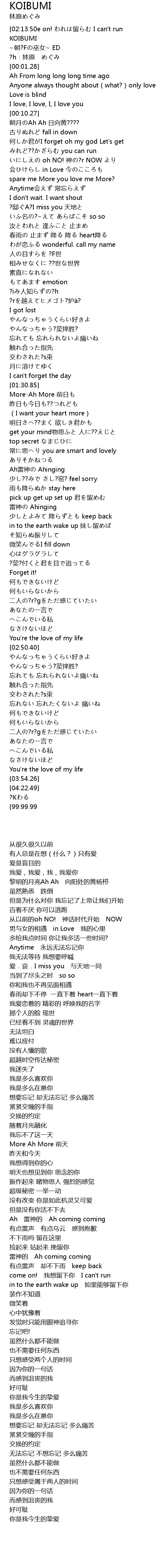 | [02:03.65] | 少し??みで さし?窑? feel sorry |