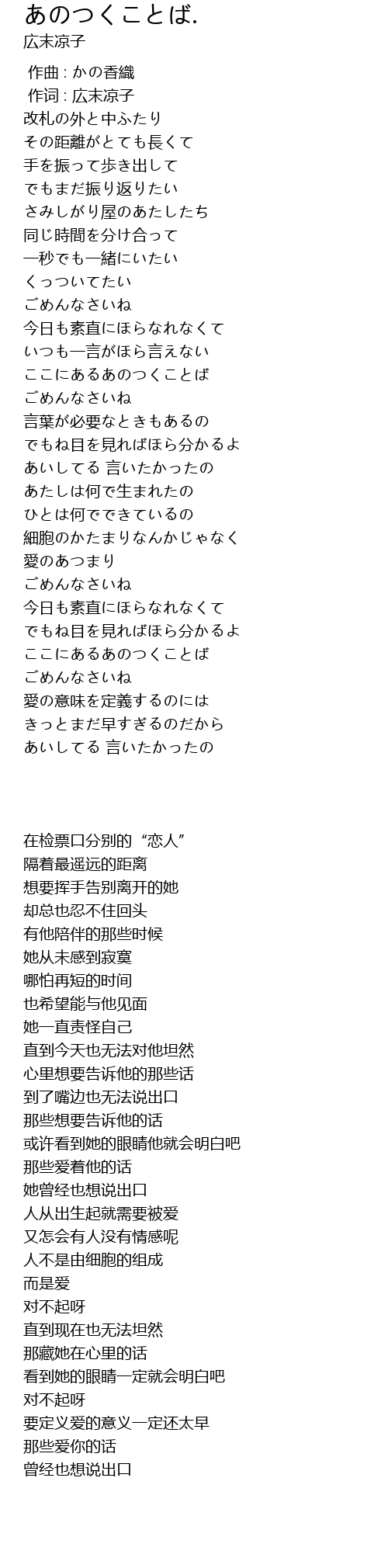 | [00:01.00] | 作词 : 広末凉子 |