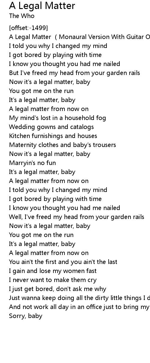 | [00:35.17] | It' s a legal matter, baby |
