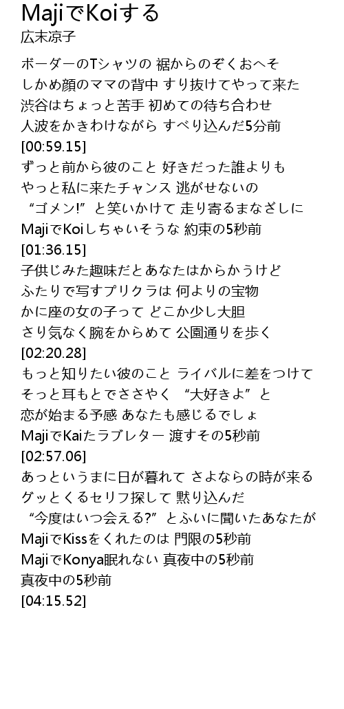 | [03:58.43] | MajiでKonya眠れない 真夜中の5秒前 |