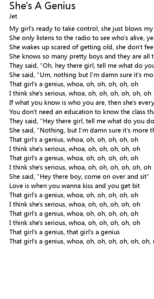 That girl's a genius, whoa, oh, oh, oh, oh, oh |