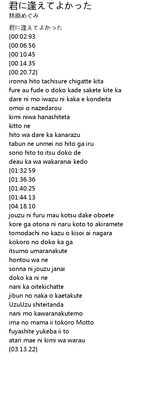| [03:43.98][00:02.93] | kimi ni aeta yokatta |