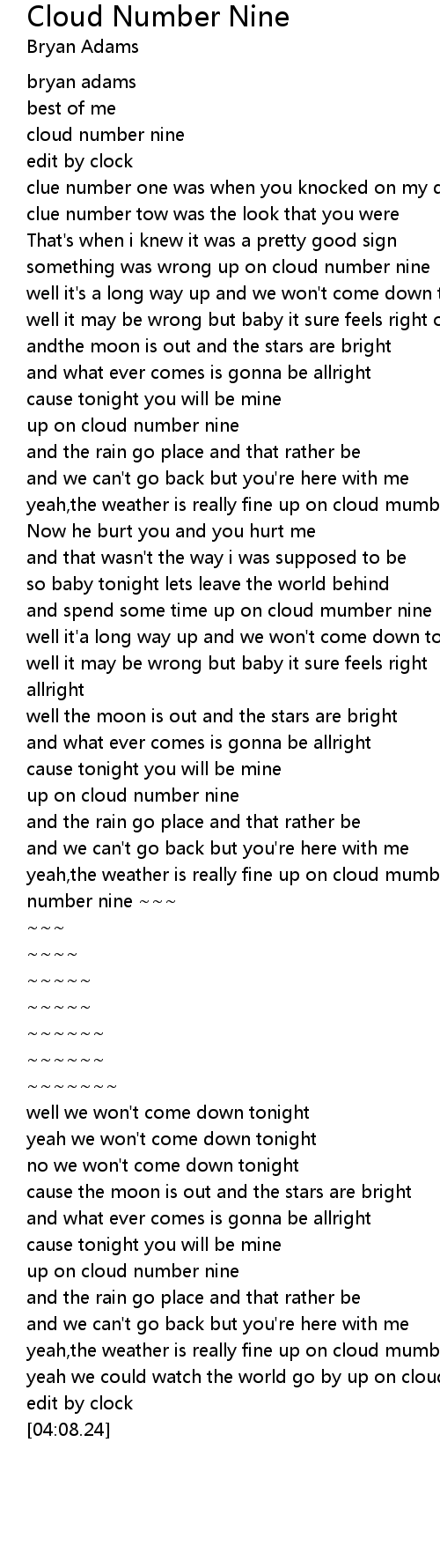 up on cloud number nine |