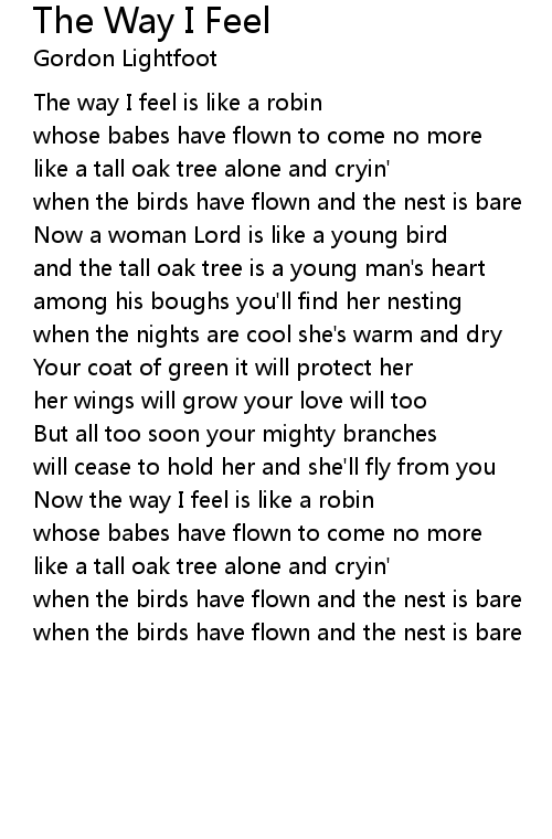 The way I feel is like a robin |