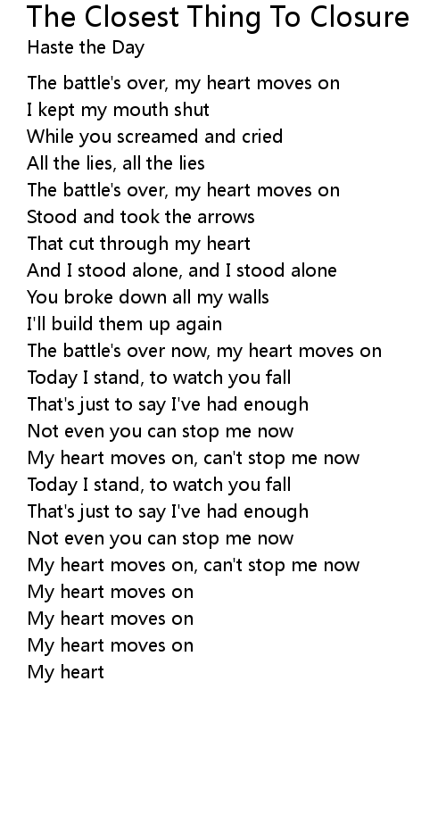 The battle's over, my heart moves on |