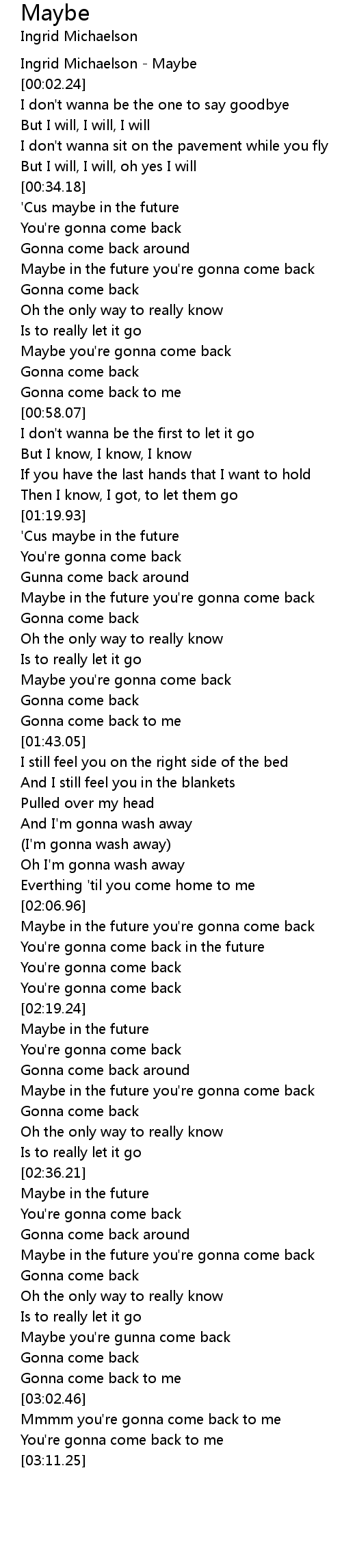 Maybe you're gonna come back |