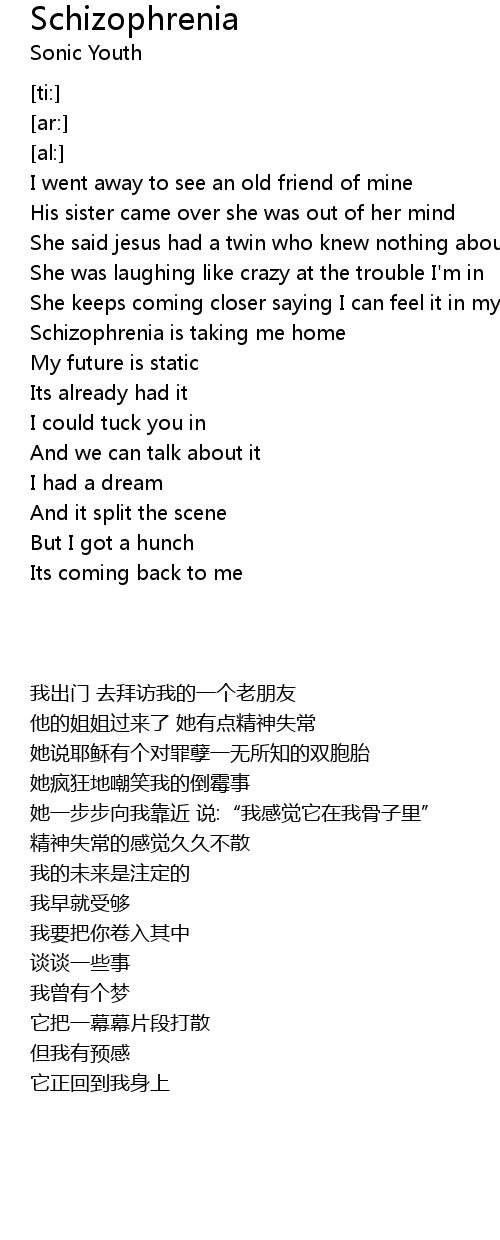 Schizophrenia is taking me home |
