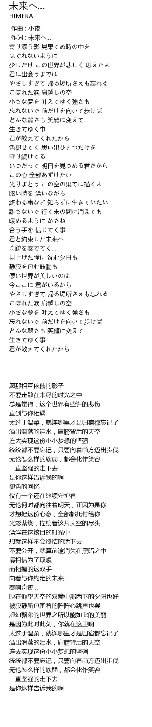 | [01:51.42] | いつだって 明日を見つめる君だから |