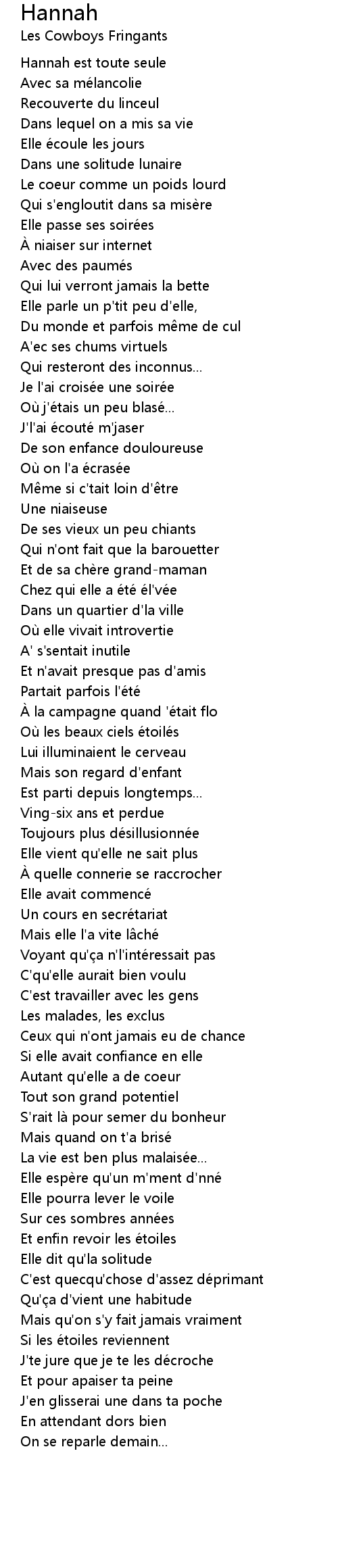 | Hannah est toute seule | |