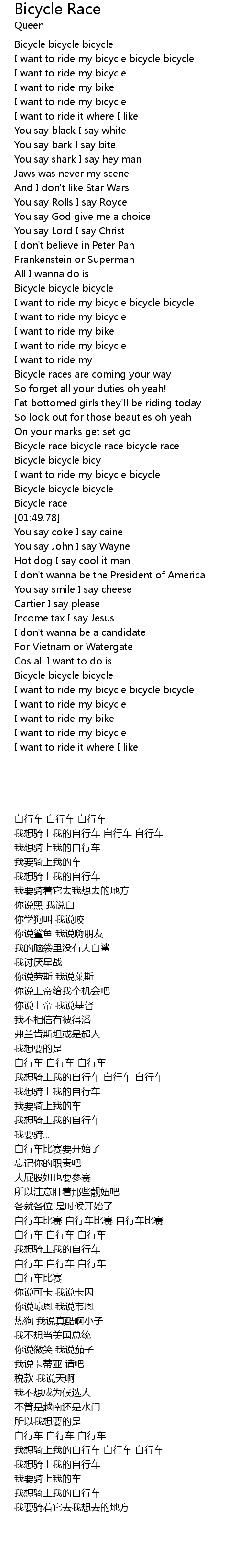 Bicycle bicycle bicycle |