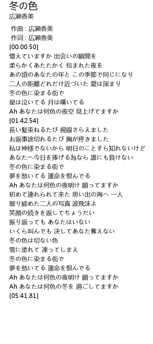 | [05:20.96] | Ah あなたは何色の冬を 過ごしてますか |