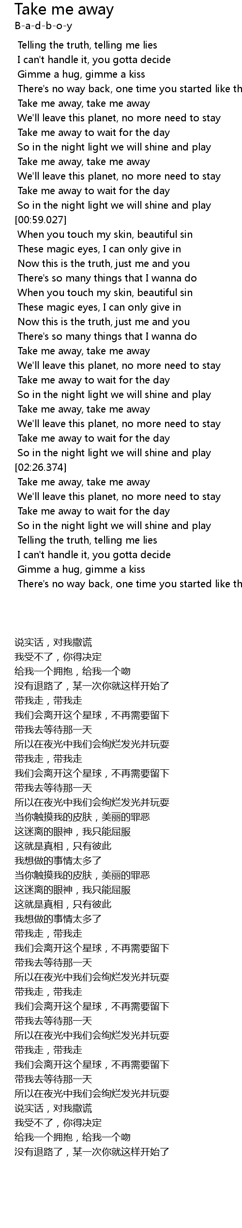 Take me away, take me away |