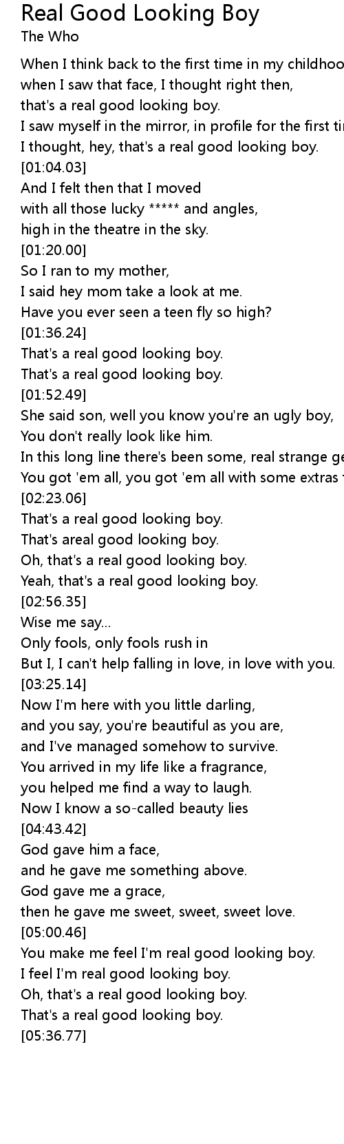 You make me feel I'm real good looking boy. |