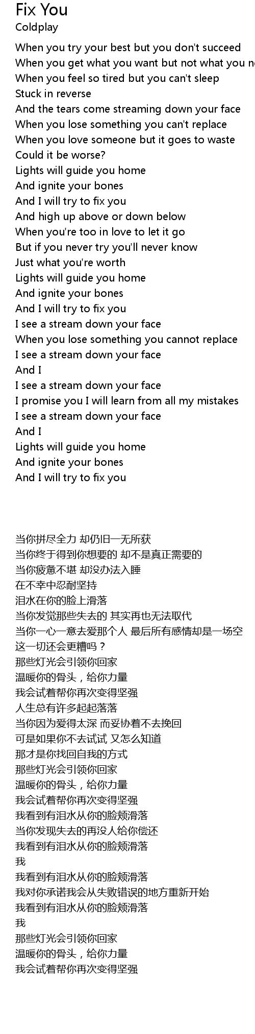 And I will try to fix you |