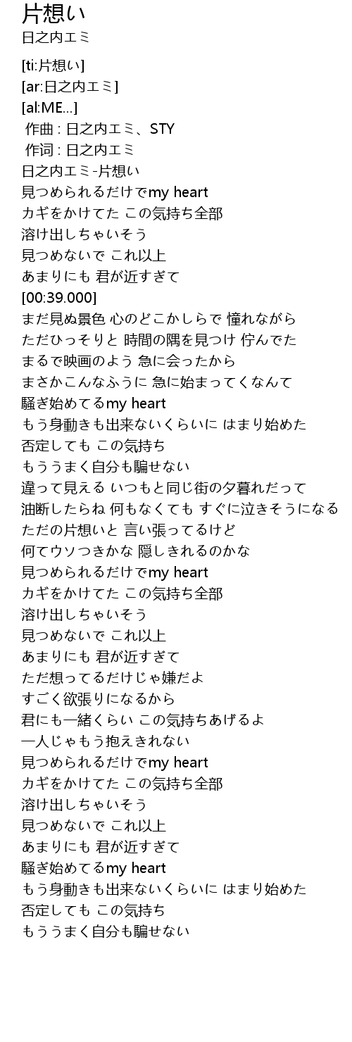 | [02:03.410] | ただの片想いと 言い張ってるけど |
