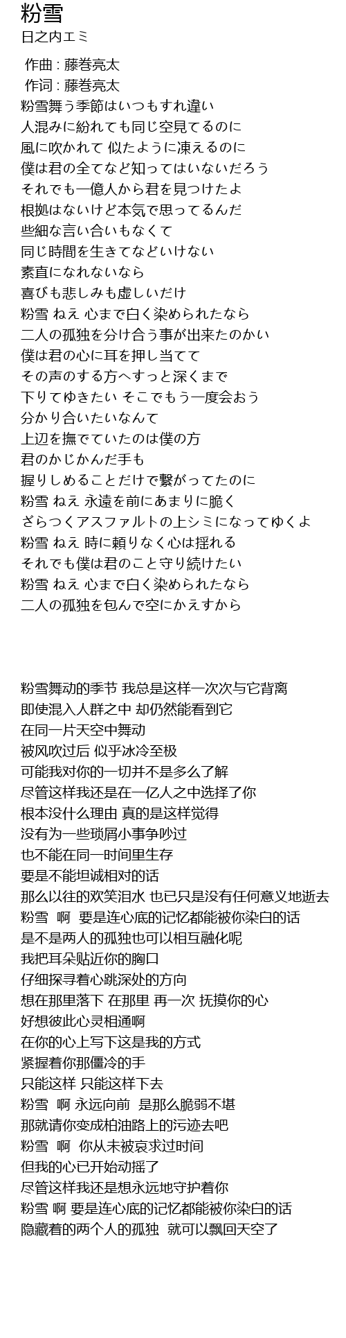 | [03:15.600] | 粉雪 ねえ 永遠を前にあまりに脆く |