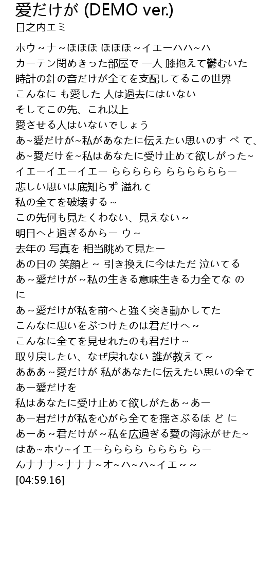 | [03:42.44] | あああ~愛だけが 私があなたに伝えたい思いの全て |