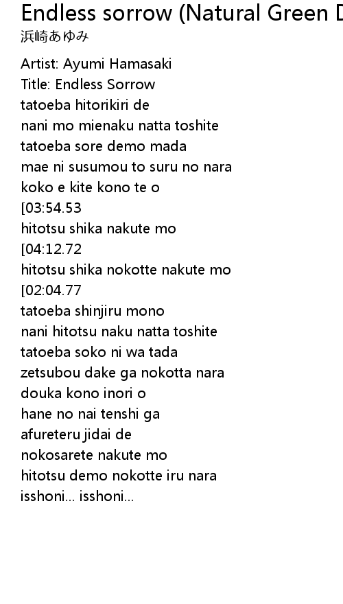 Endless sorrow (Natural Green Dub Mix) Lyrics