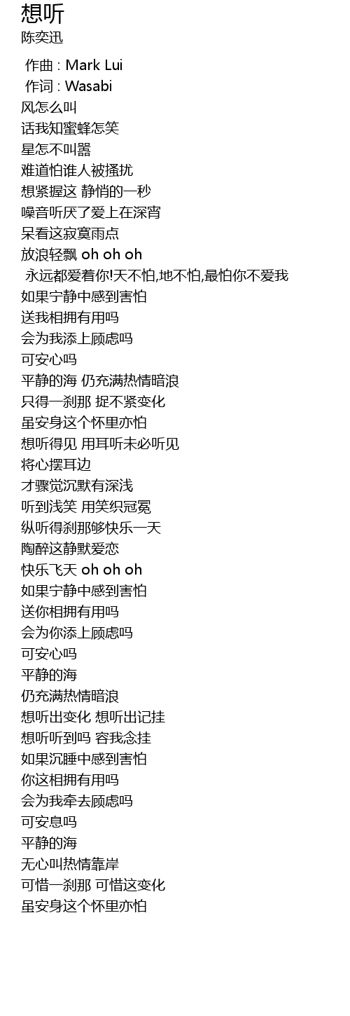 | [00:00.00] | 作曲 : Mark Lui |