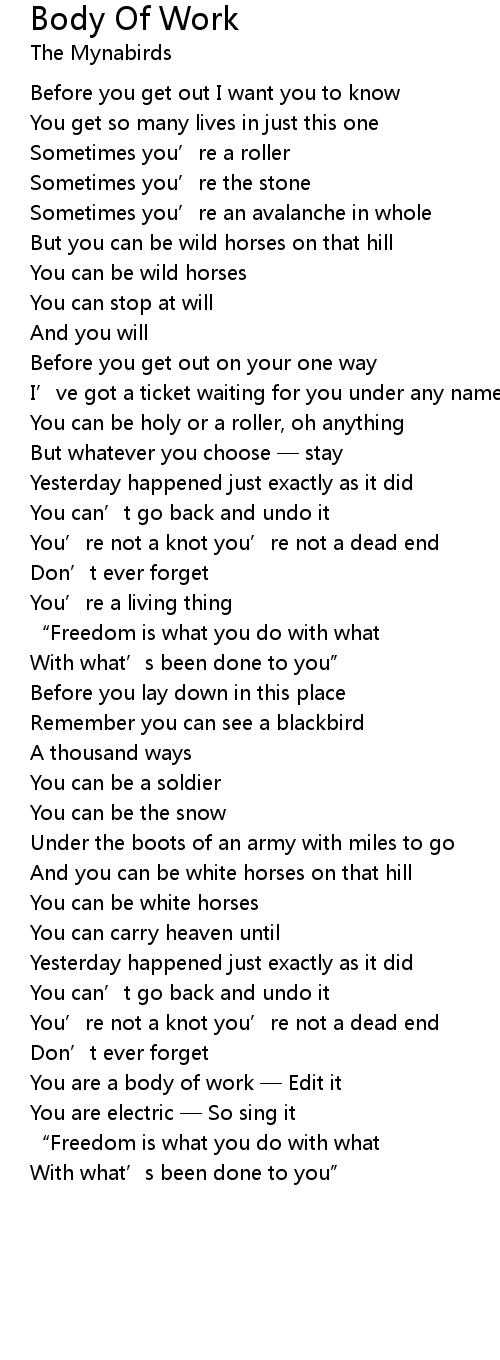 | Song | Body Of Work |