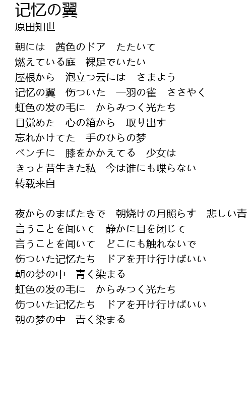| 记忆の翼 伤ついた 一羽の雀 ささやく | |
