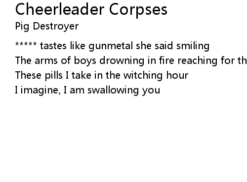 | ***** tastes like gunmetal she said smiling | |