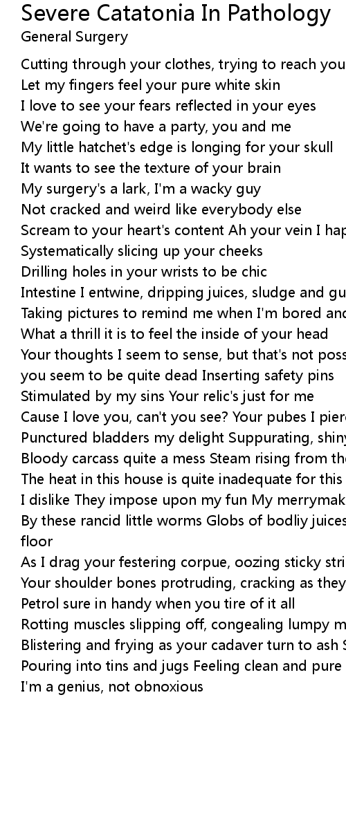 As I drag your festering corpue, oozing sticky strings of gore |