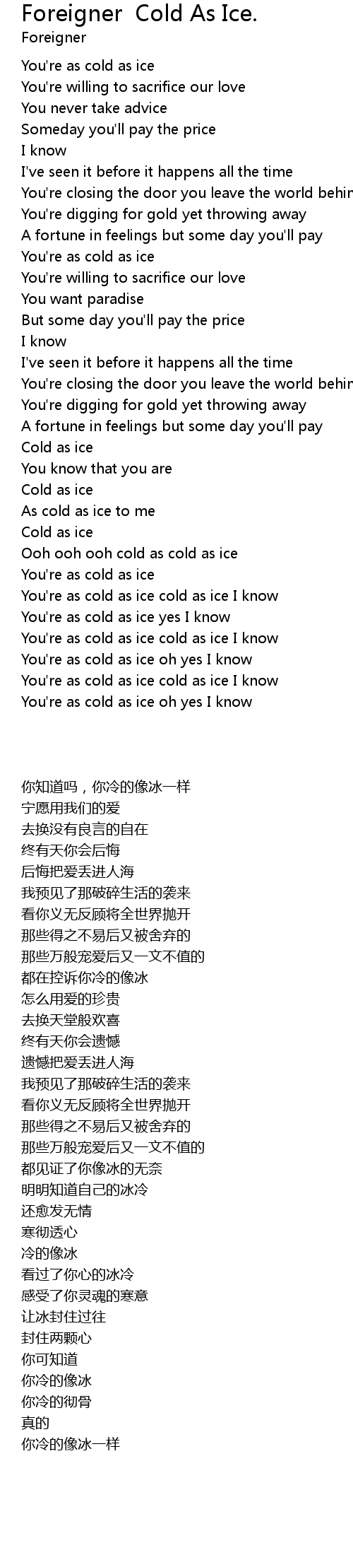You're as cold as ice yes I know |