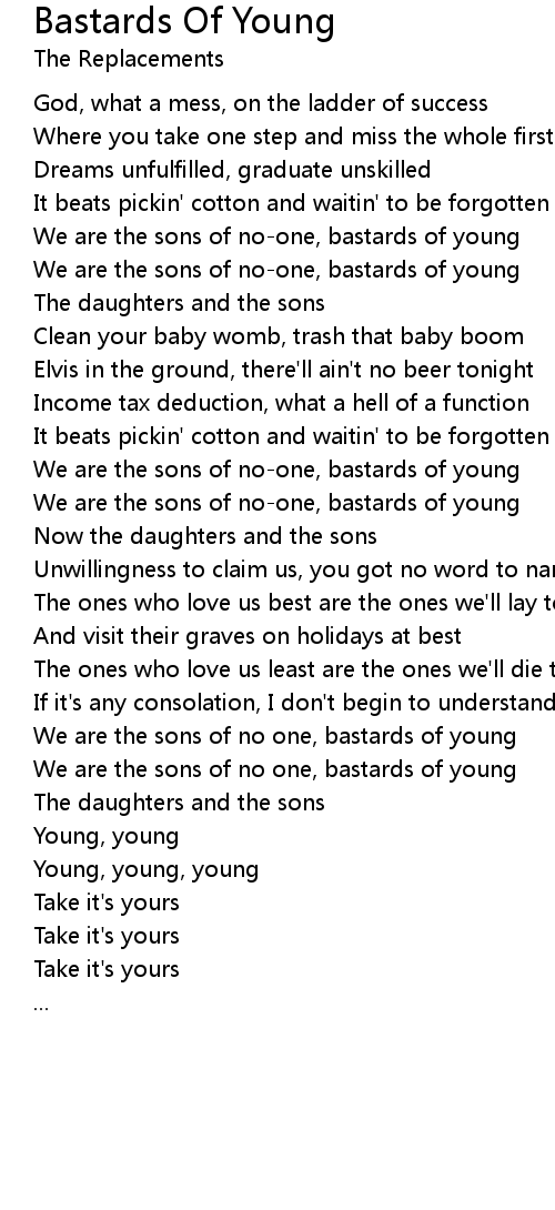 We are the sons of no-one, bastards of young |
