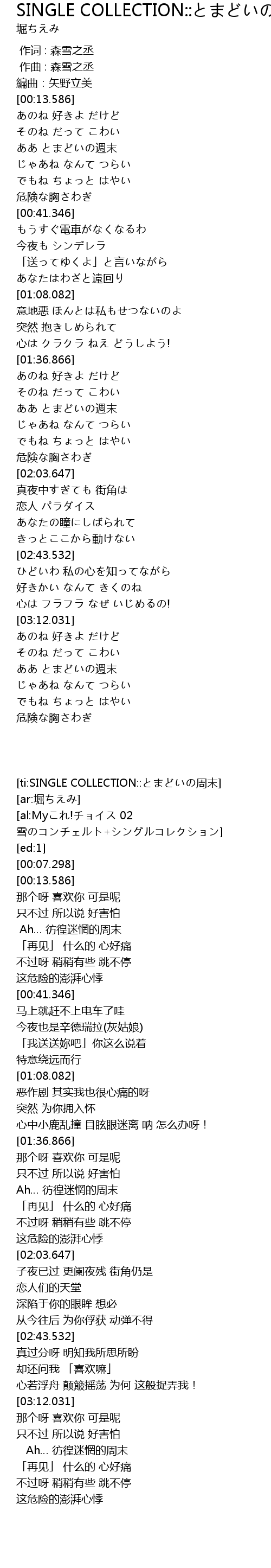 | Song | SINGLE COLLECTION::とまどいの周末 |