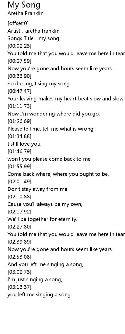 | [00:59.67] | Your leaving makes my heart beat slow and slow |