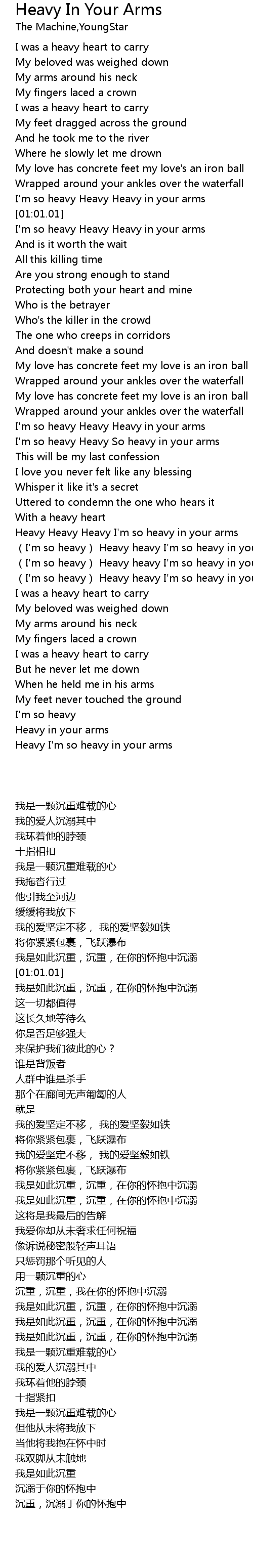 | [00:52.38] | I' m so heavy Heavy Heavy in your arms |