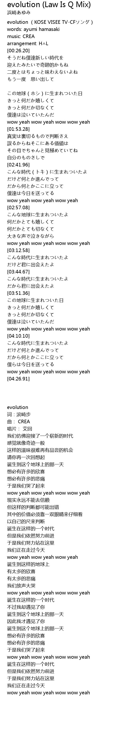 [00:01.32] evolution (KOSE VISEE TV-CFソング)