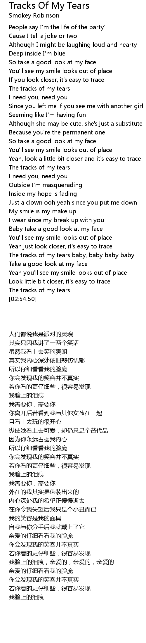 The tracks of my tears baby, baby baby baby |