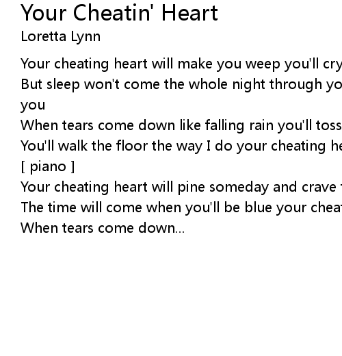 | Your cheating heart will make you weep you'll cry and cry and try to sleep | |