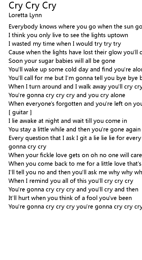Cause when the lights have lost their glow you'll cry cry cry |