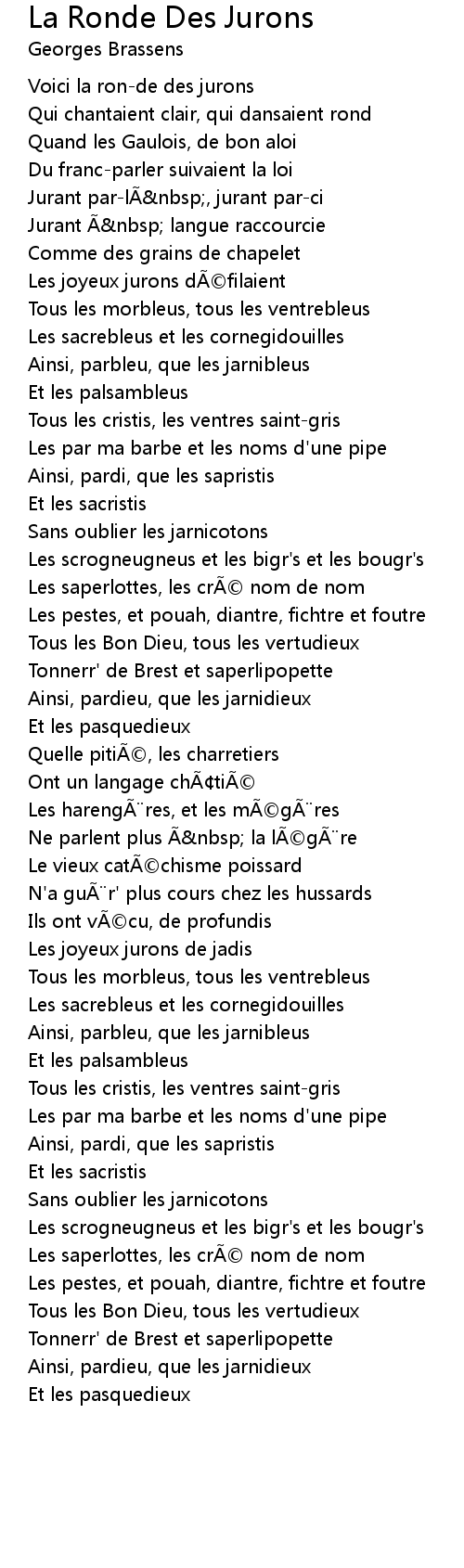 | Song | La Ronde Des Jurons |