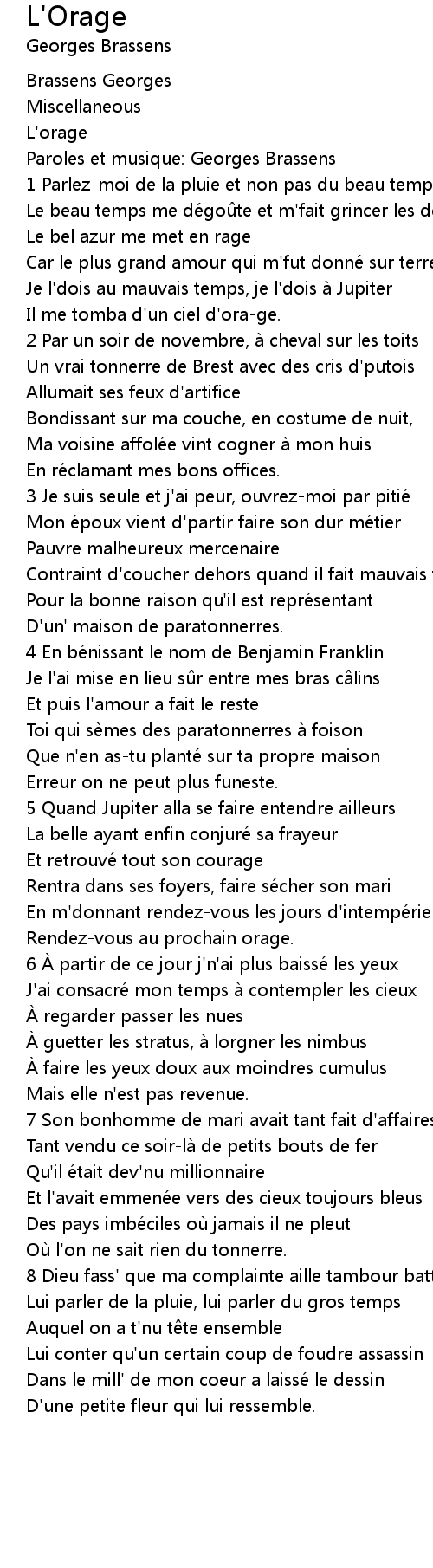 | Song | L'Orage |