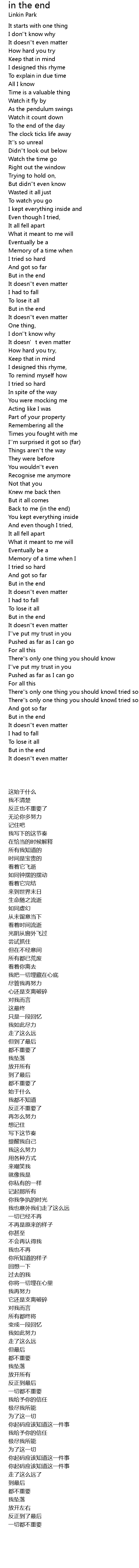 | Song | in the end |