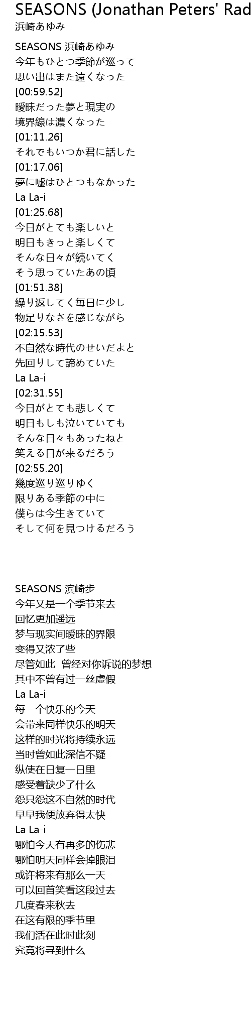 | [00:00.44] | SEASONS 浜崎あゆみ |