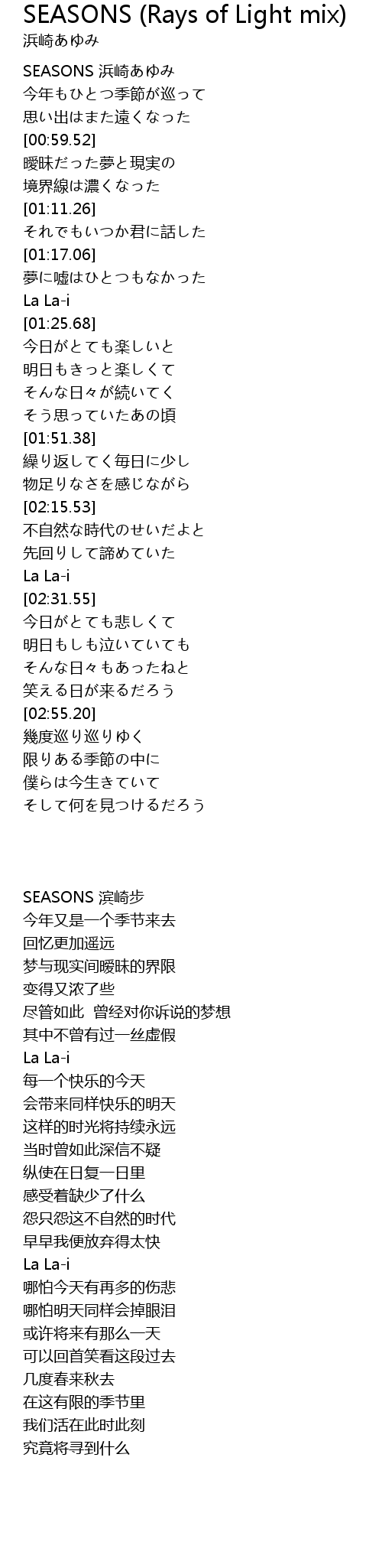 | [00:00.44] | SEASONS 浜崎あゆみ |
