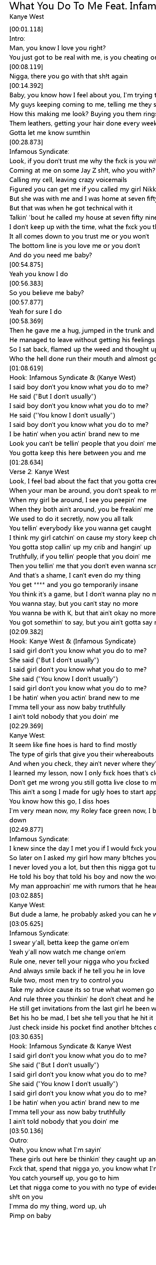| [03:30.877] | Hook: Infamous Syndicate & Kanye West |