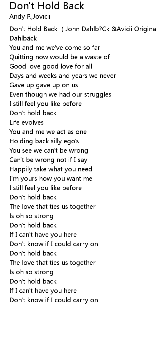 | [00:00.396] | Don' t Hold Back John Dahlb? Ck Avicii Original Mix John Dahlb ck |
