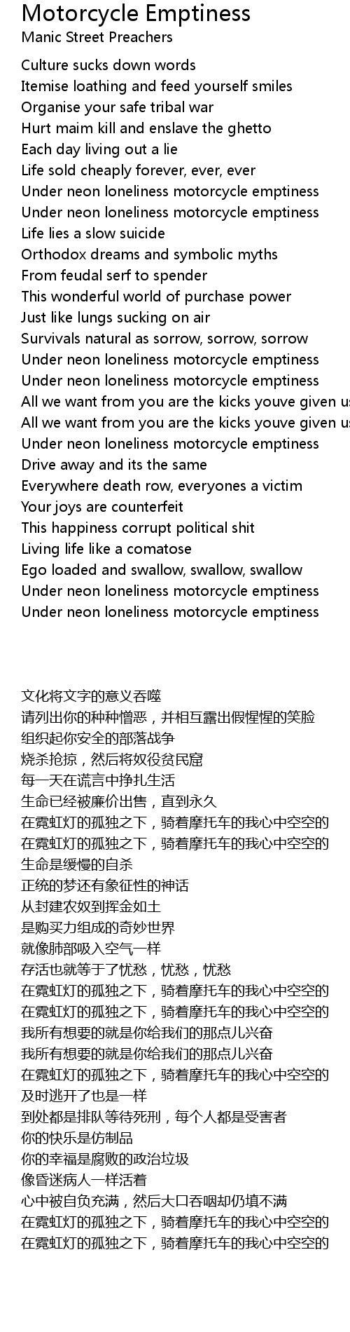 Under neon loneliness motorcycle emptiness |