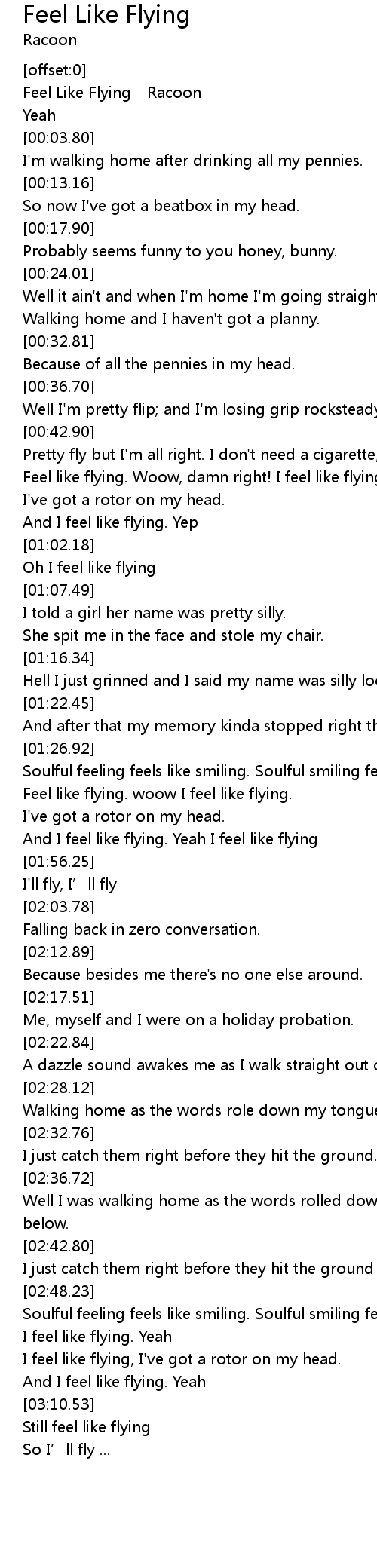 | [00:00.41] | Feel Like Flying - Racoon |