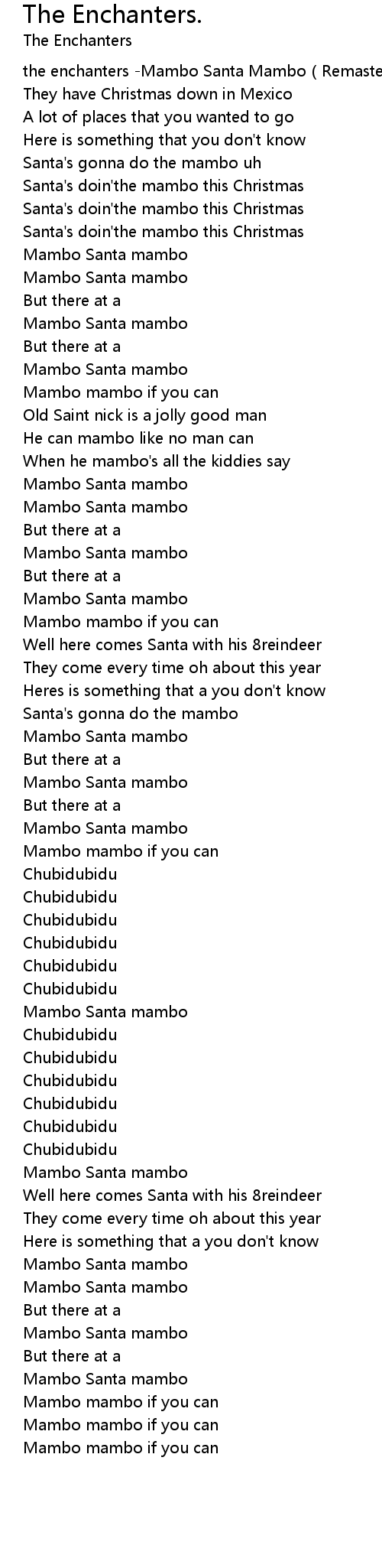 | [00:00.25] | the enchanters Mambo Santa Mambo Remastered |