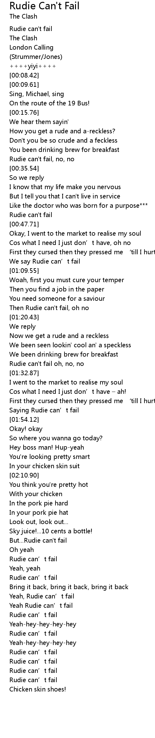 | [01:17.95] | Then Rudie can't fail, oh no |