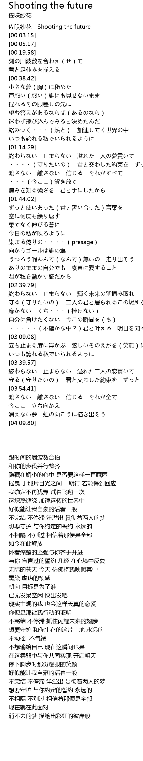 | [00:00.05] | 佐咲纱花 - Shooting the future |